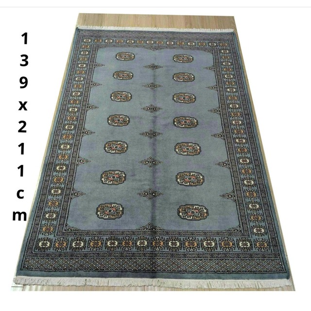 リビングソファの前、ダイニングテーブルの下に使います。 パキスタンの手織り・シャンプー洗い仕上げの絨毯です。 織り上げた後にシャンプー洗いしてありますのでシルクのような肌触りでほこりやムダ毛はでないので掃除とお手入れは楽です。 1と2番目の写真は光沢をわかるように逆向きに撮ってます。 パキスタン手織りじゅうたん ラホール産 羊毛100% 136x214cm デザイン:ジャルダー 厚み約7ミリ カラー:ブルーグレー 柔らかいです。 たためます。 丸められます。 シルクのような肌触りです。 ホコリやムダ毛はでません。 お手入れもめっちゃ楽。 部分洗いできます。 アフターもOKなので安心して購入下さい。 質問は気軽にどうぞ。