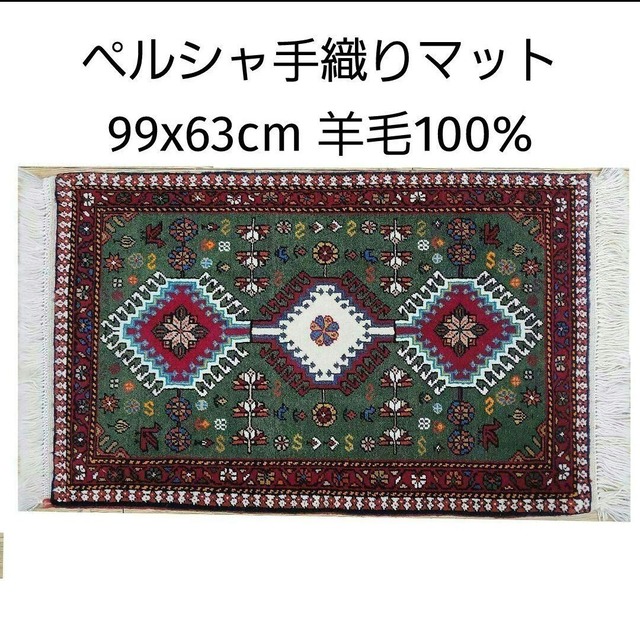 ペルシャ手織りマット 羊毛100% 天然草木染め 手染め 100x63cm(房除く) 厚み約8ミリ たためます 丸められます アフターもOKなので安心して購入下さい。 質問など気軽にどうぞ。 このトライバルマットは、イランのファールス州に住むヤラメ族の遊牧民によって作られています。地元産のウールと天然染料で作られており、鮮やかで長持ちする色彩が特徴です。 デザインは幾何学的なものが多く、この地域の歴史や民話からインスピレーションを得た複雑なパターンが特徴です。 3 つの六角形のメダルを縦に並べ、動物や星などのモチーフを詰め込んだ特徴的なシー ホーゼ モチーフが使用されます。 ヤラメ絨毯はトルコ結び(対称結び)で結ばれており、パイルが短い傾向があるため、清潔に保つことができメンテナンスが簡単です。 精巧な職人技と独特の個性で知られており、多くの場合、ウールの土台 (縦糸) とウールのパイルが特徴です。 ヤラメ絨毯は耐久性と足元の柔らかさから、ベッドルームから廊下までさまざまな居住スペースに優美さを加えるのに理想的であるため、今でも人気のある選択肢の一つです。