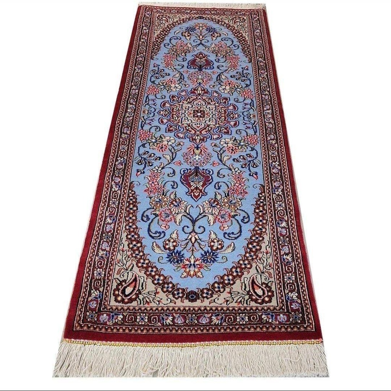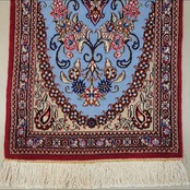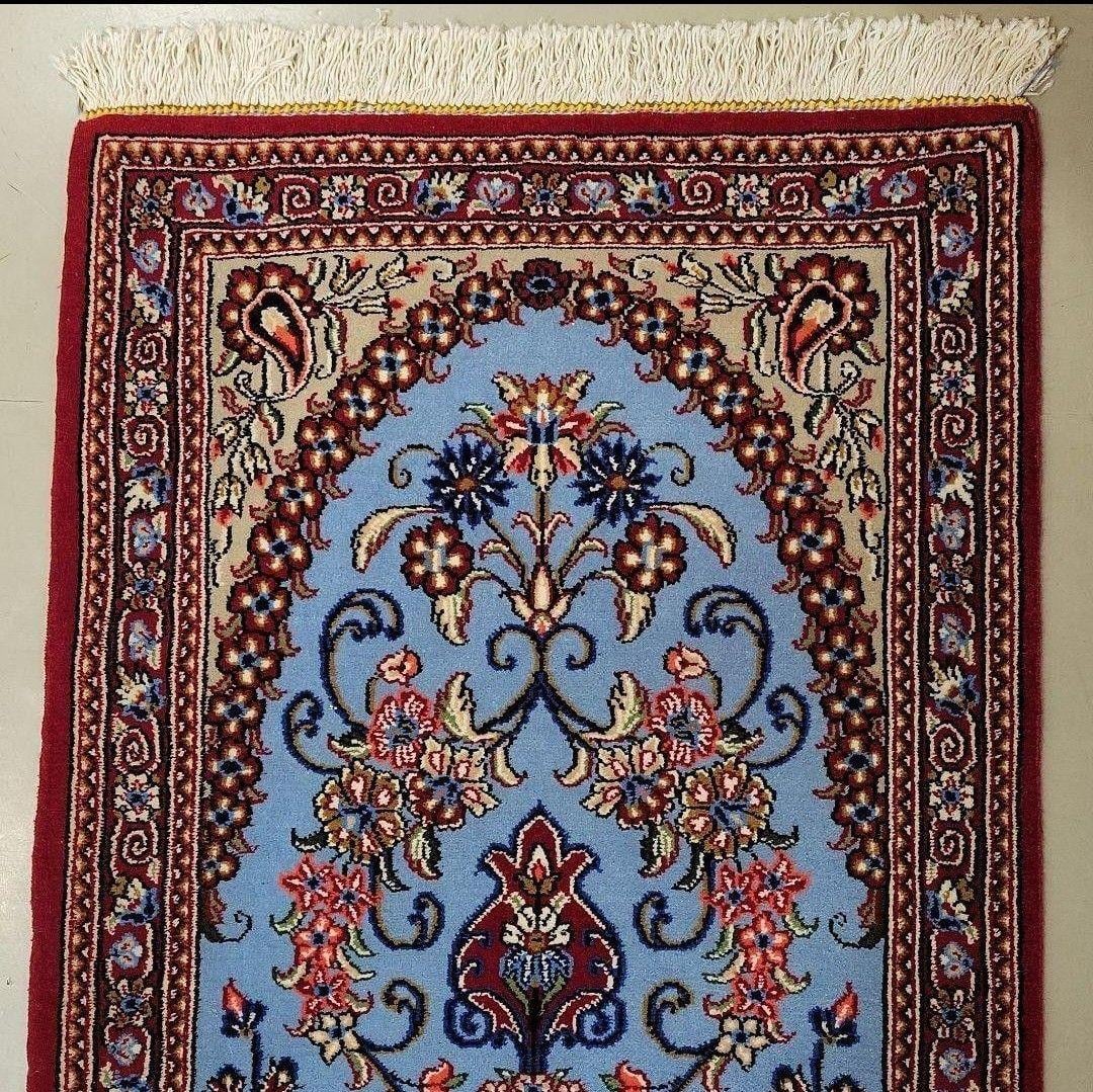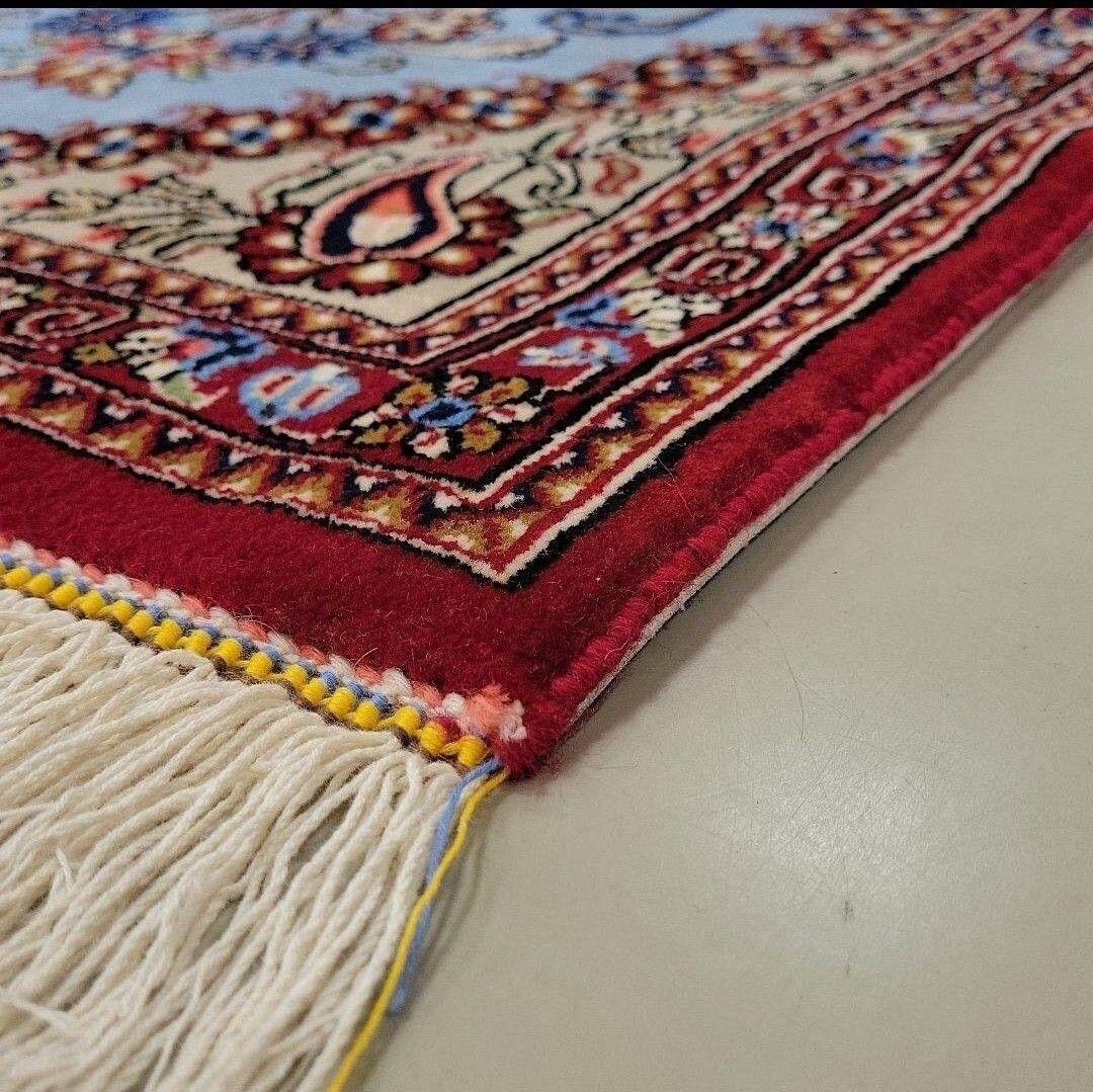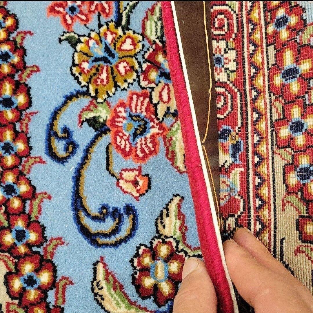 出品中のこの絨毯は絹じゅうたんで有名な産地クムで作られた物ですが絹ではなくコルクウールで作られた数少ない物です。
