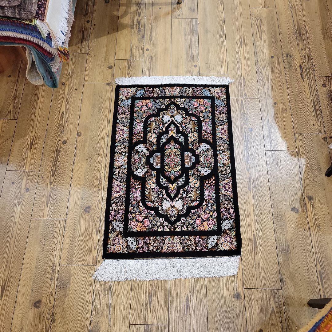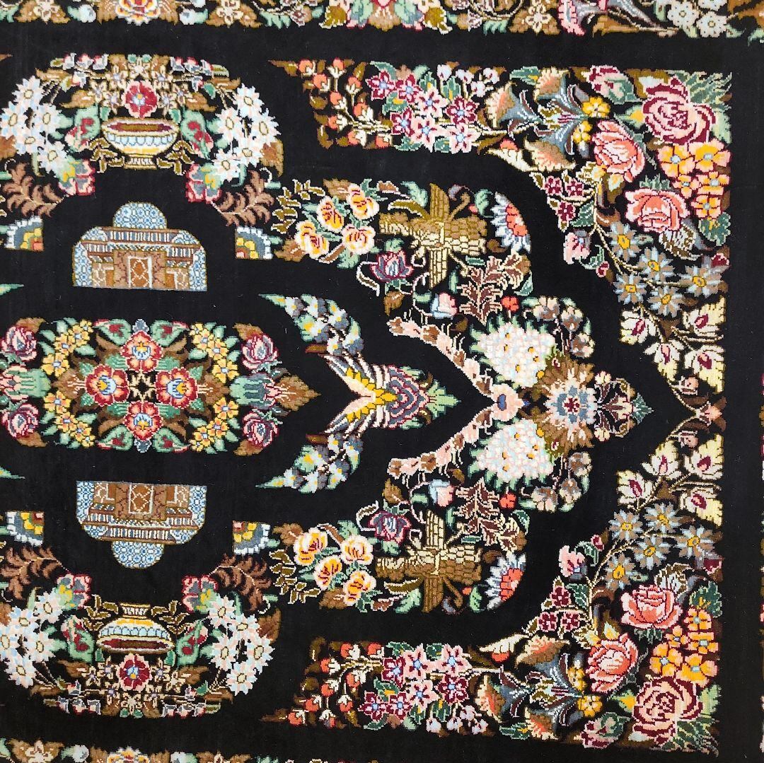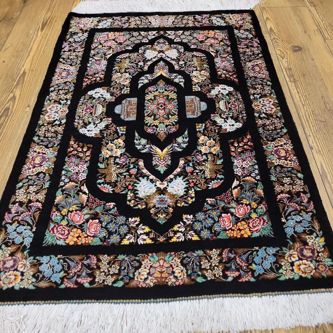 この絨毯は シルクで有名な産地クムのマットです。