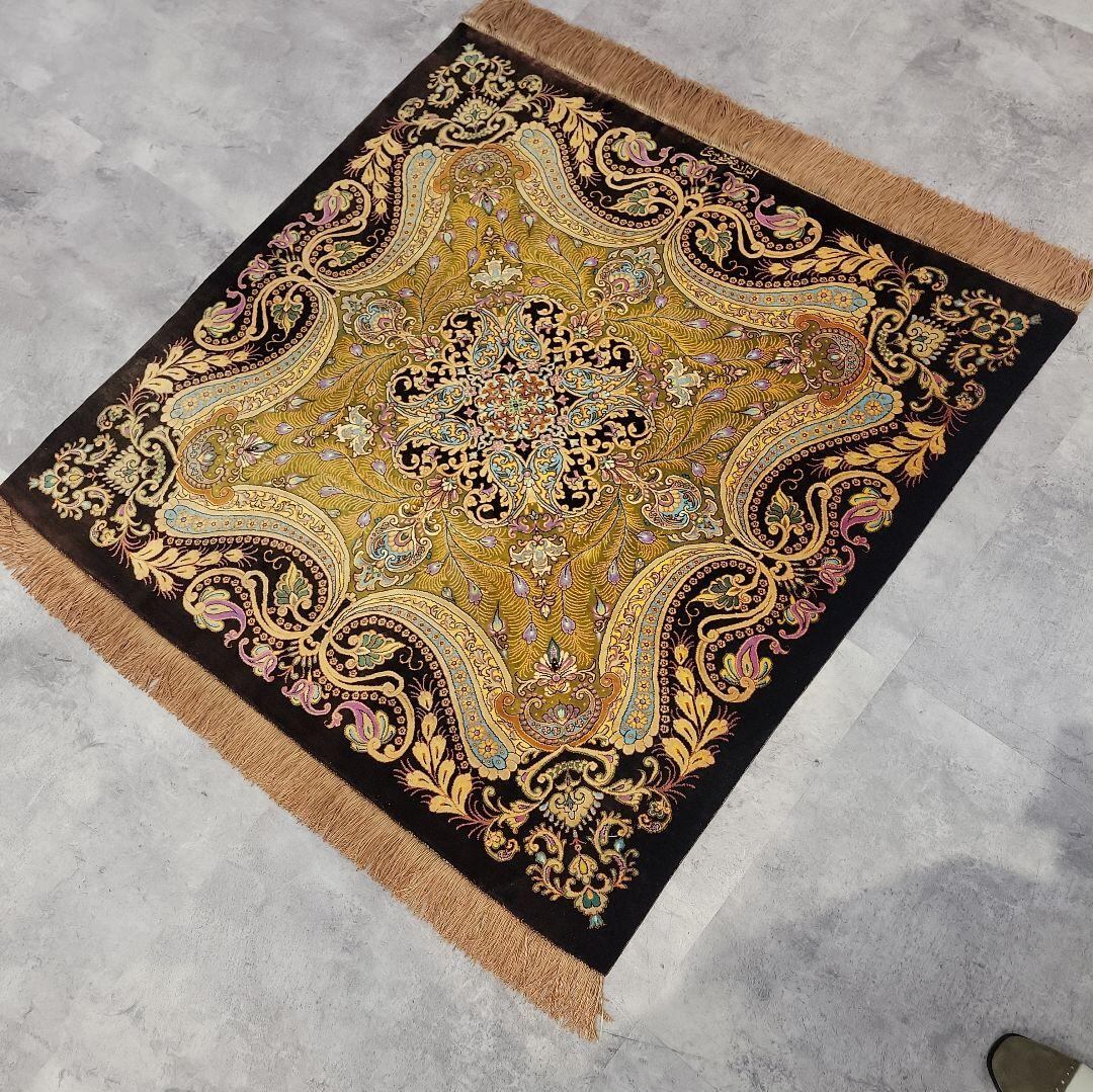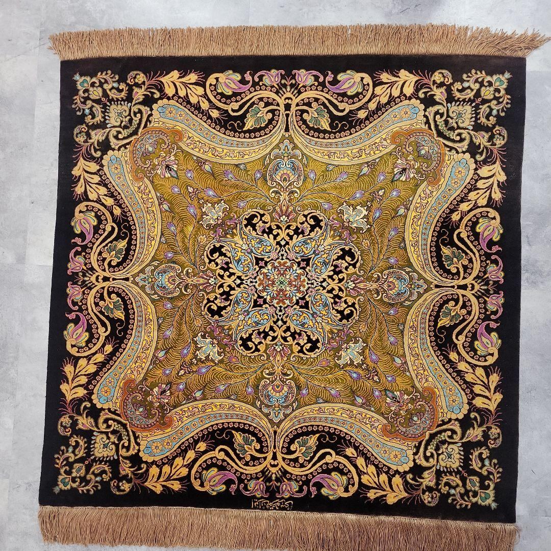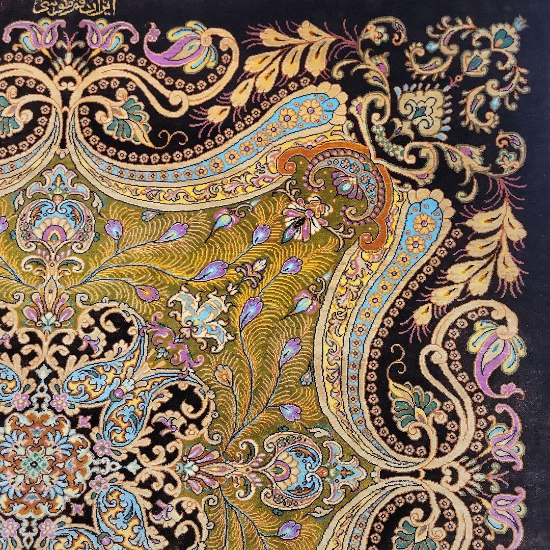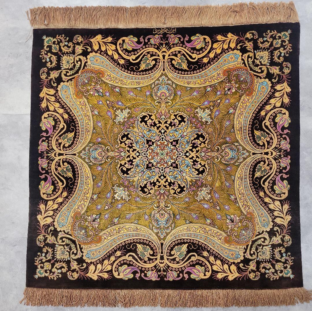 出品中のこの絨毯は シルクで有名な産地クムの中で評価が高いハメド先生の作品でサイン入りです。サインの写真あり。