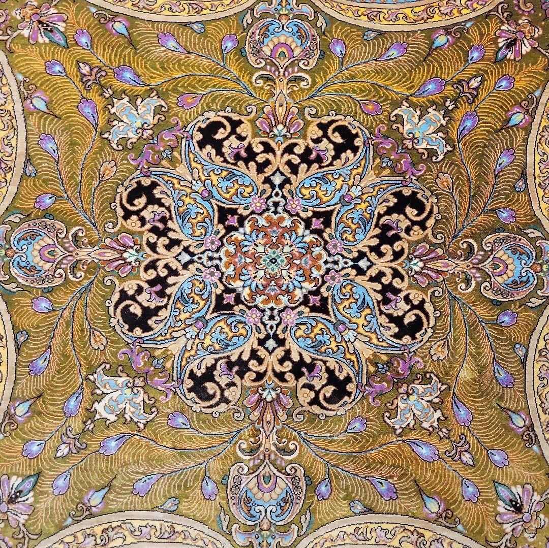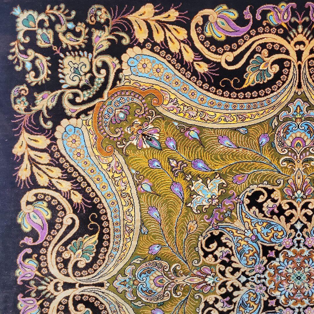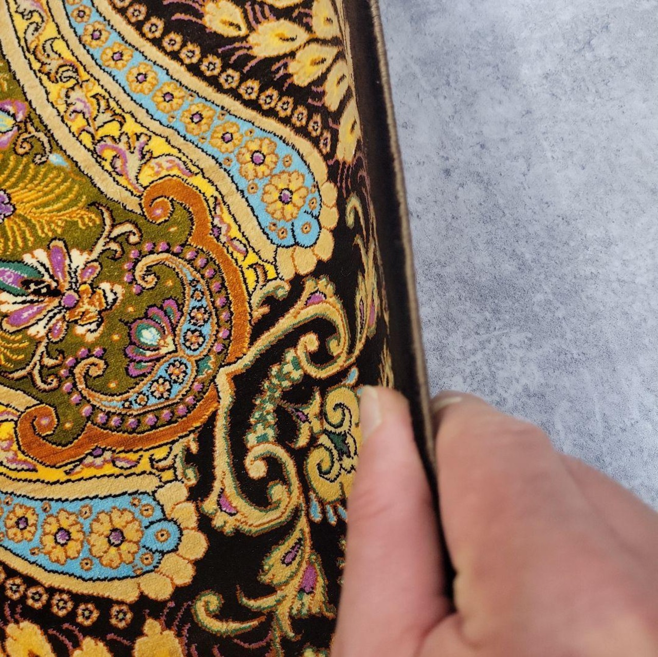 出品中のこの絨毯は シルクで有名な産地クムの中で評価が高いハメド先生の作品でサイン入りです。サインの写真あり。