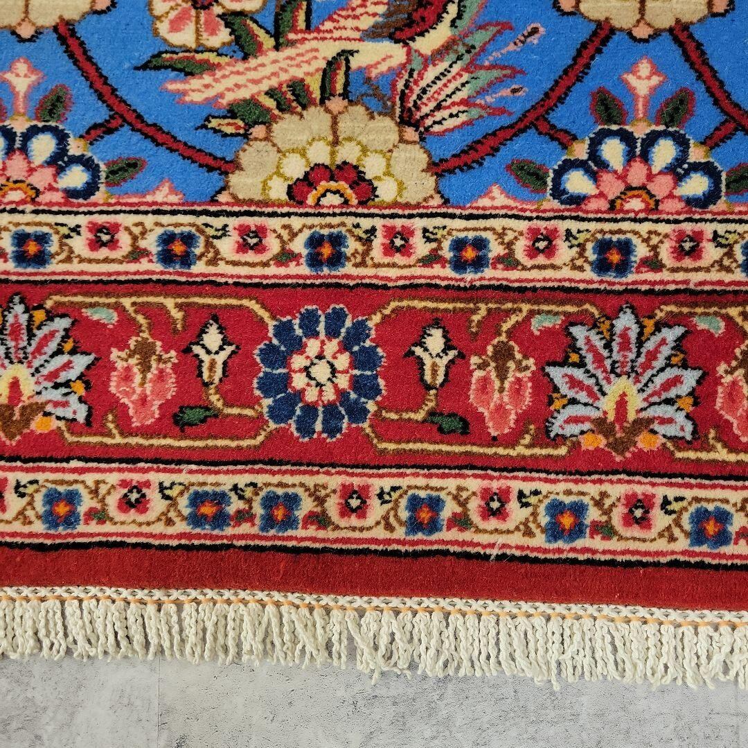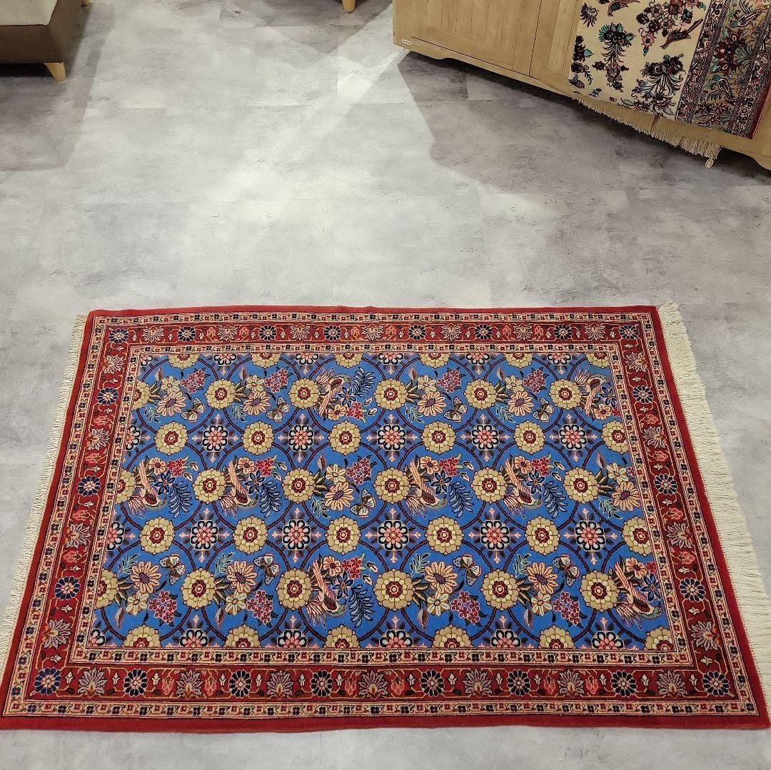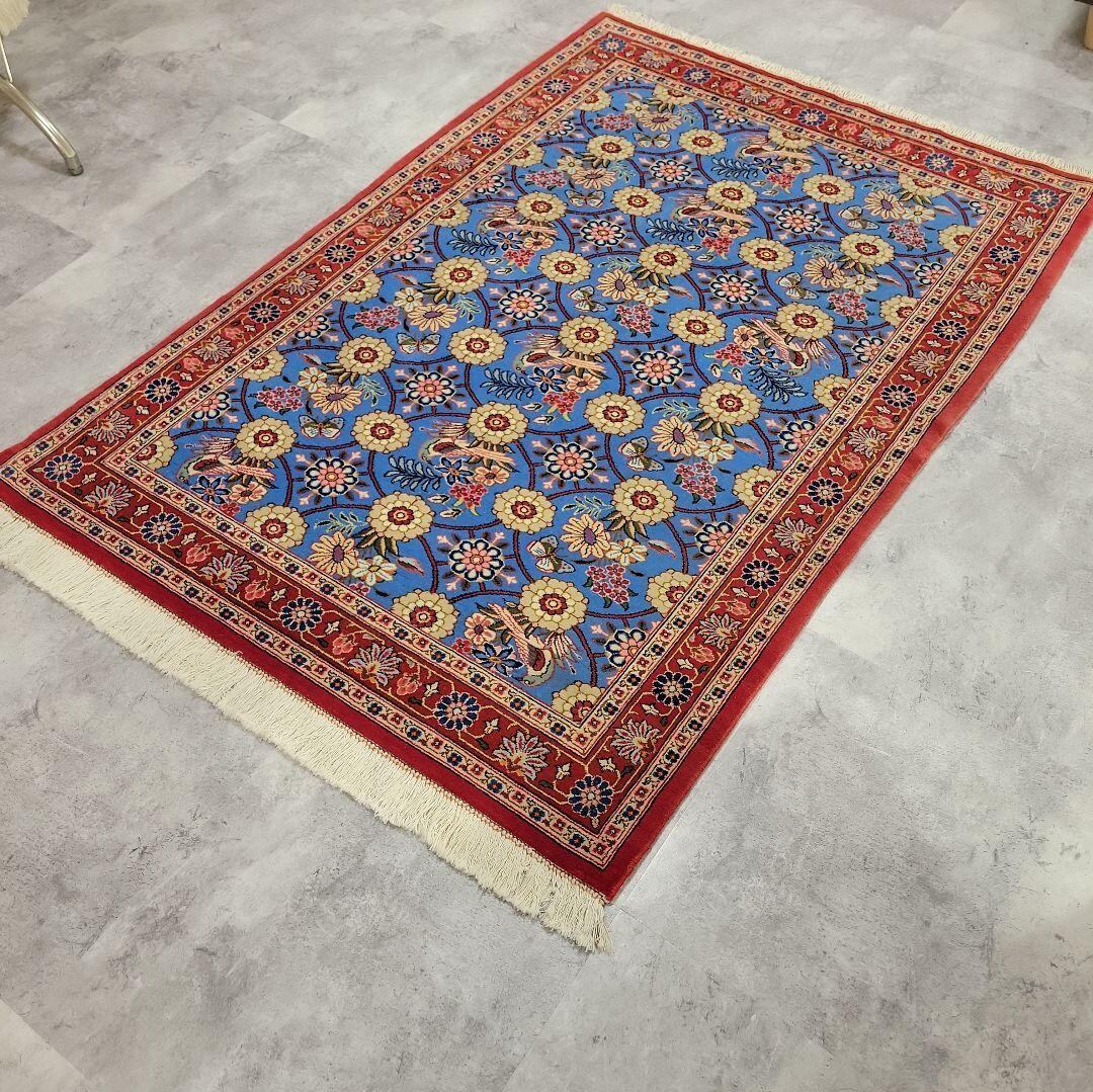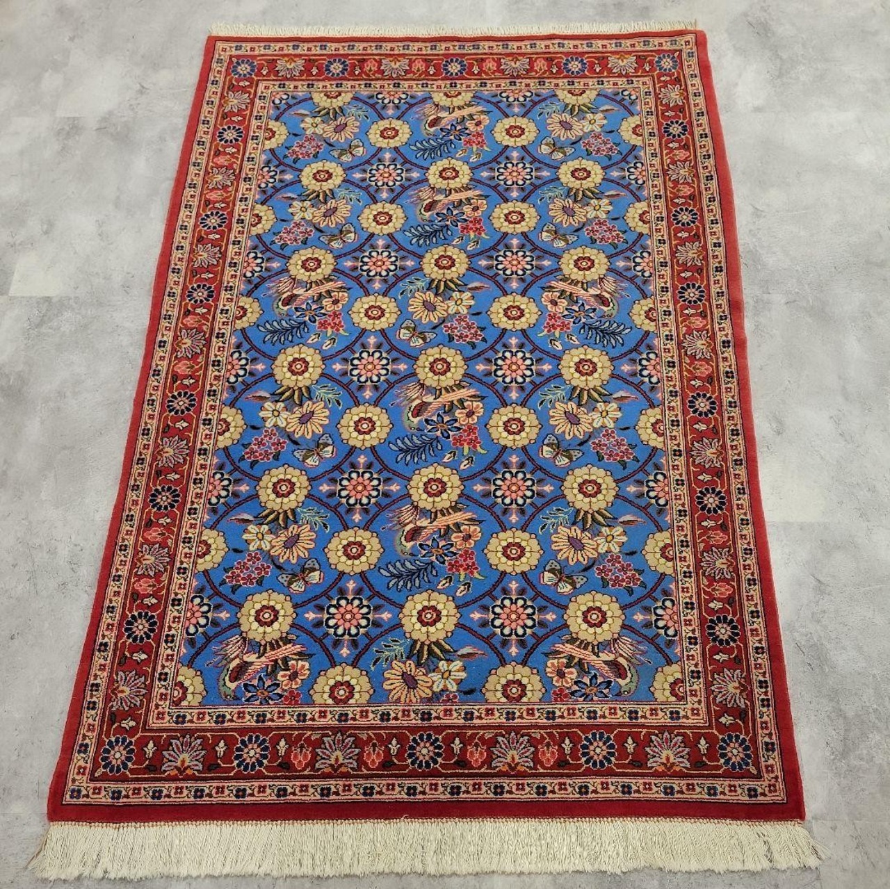この絨毯はシルクじゅうたんで有名産地クムで作られた物ですがシルクではなウールのアンティーク物です。