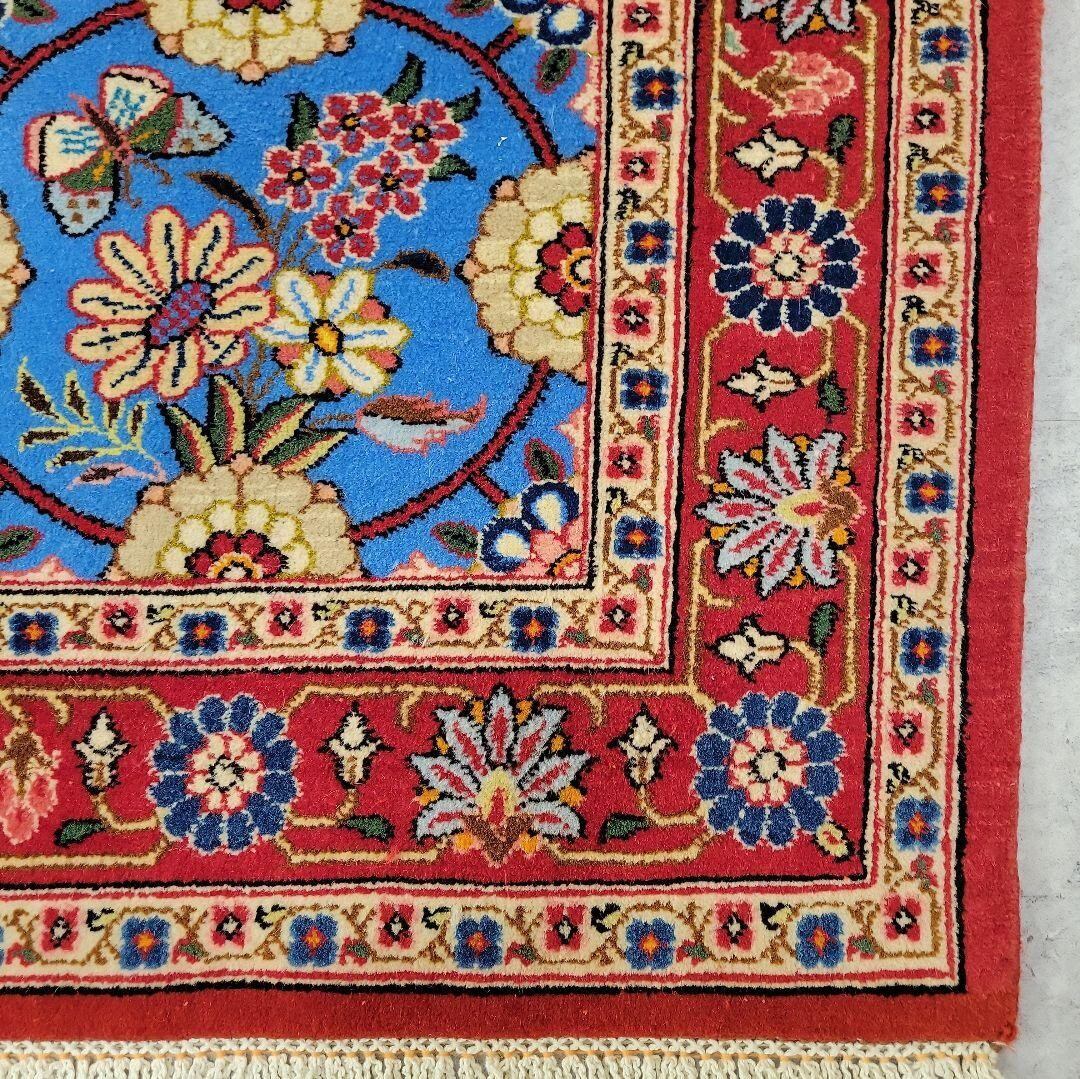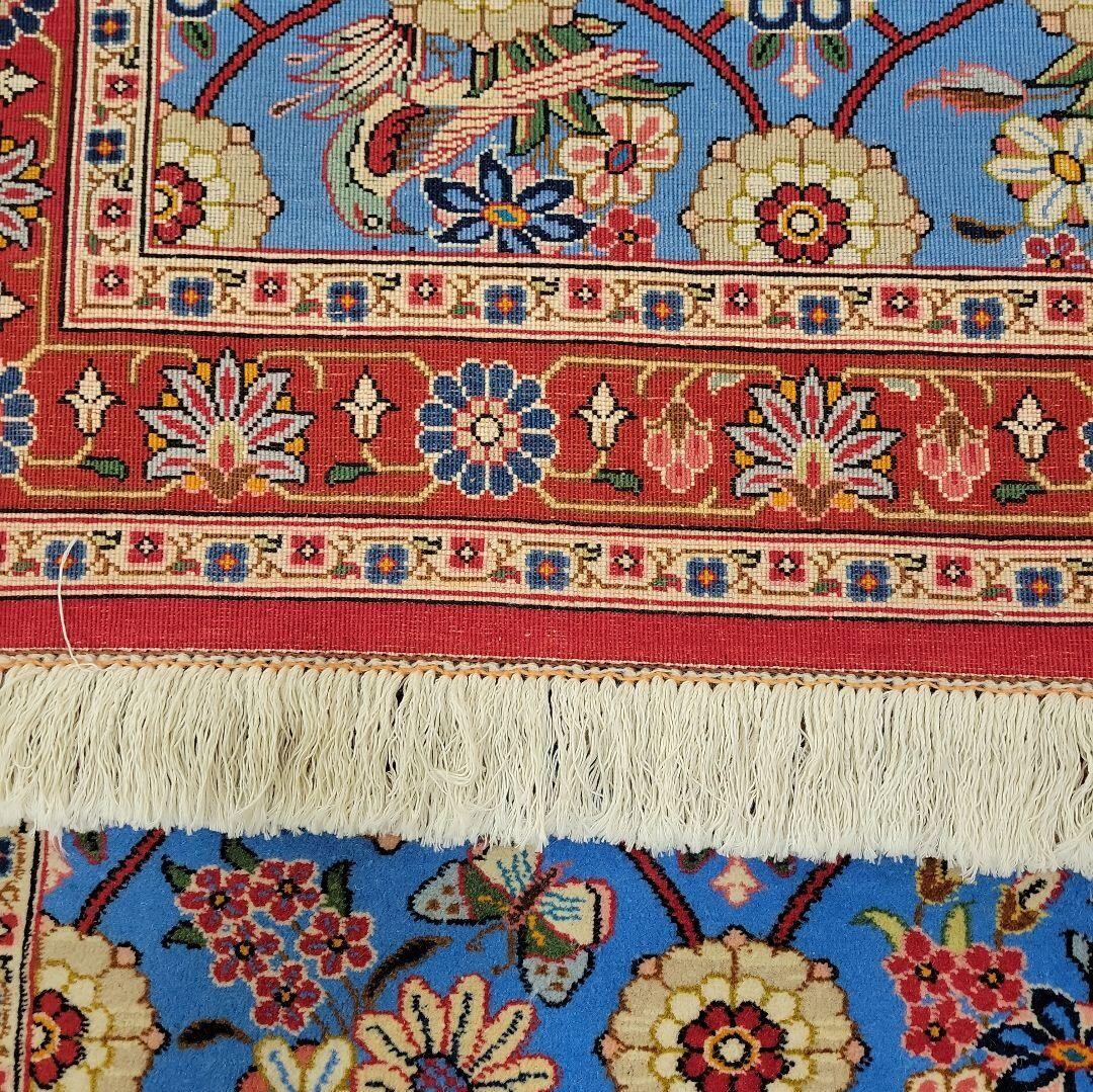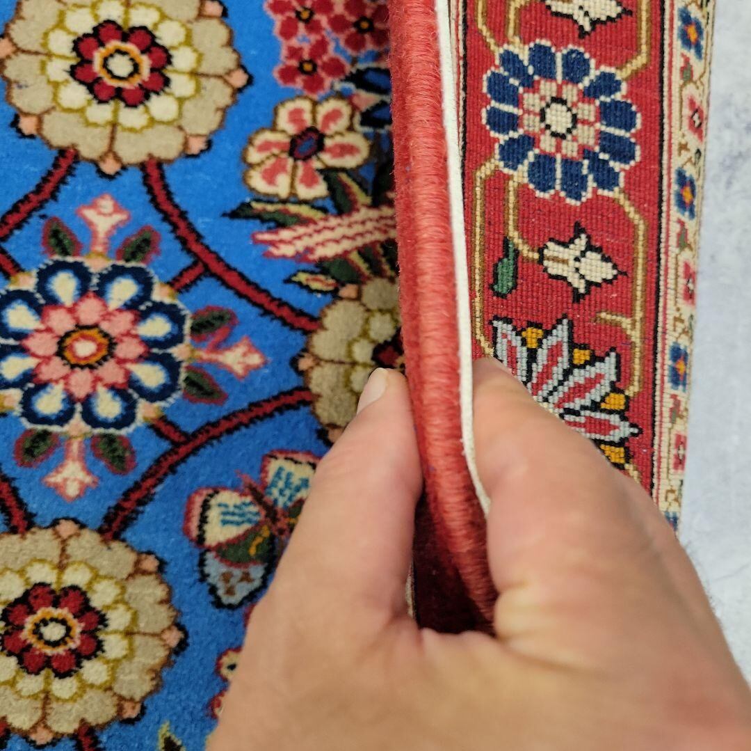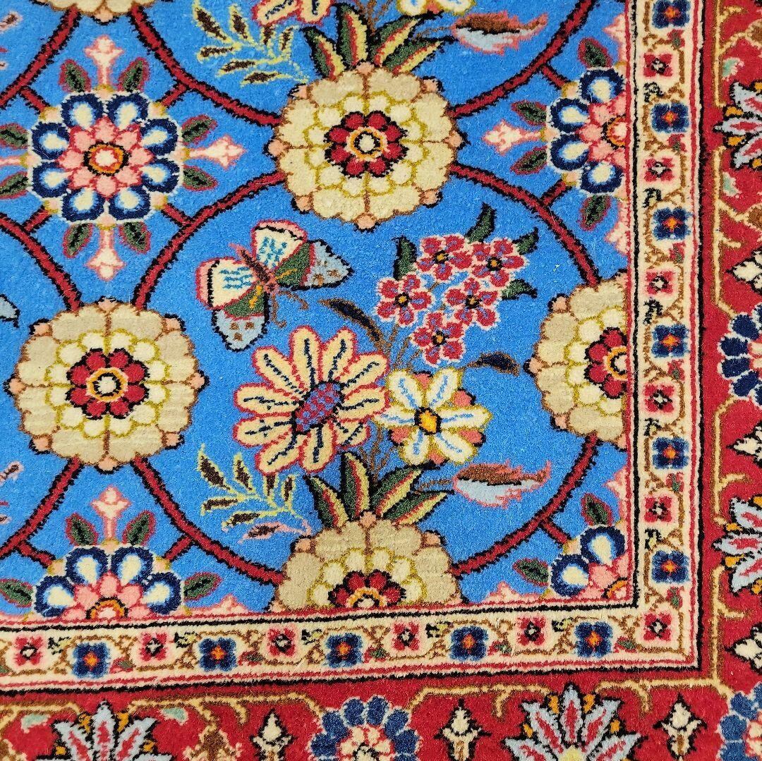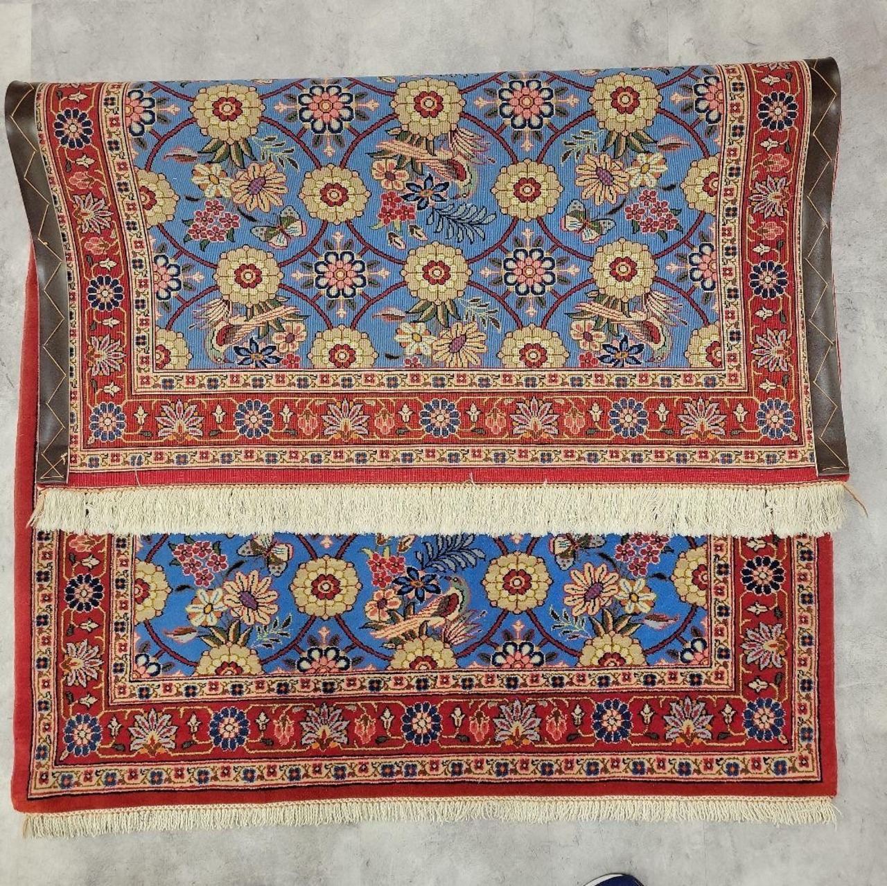 この絨毯はシルクじゅうたんで有名産地クムで作られた物ですがシルクではなウールのアンティーク物です。