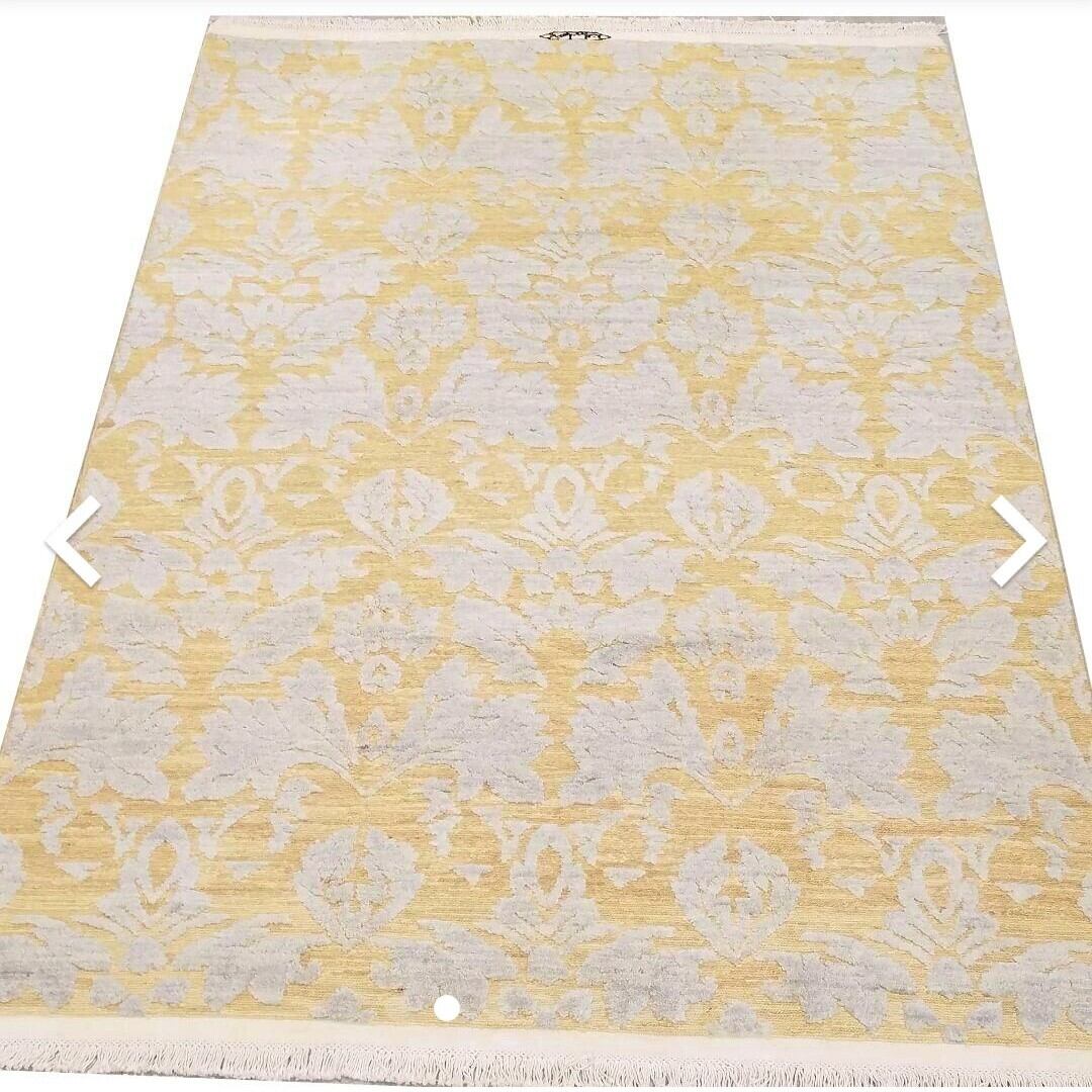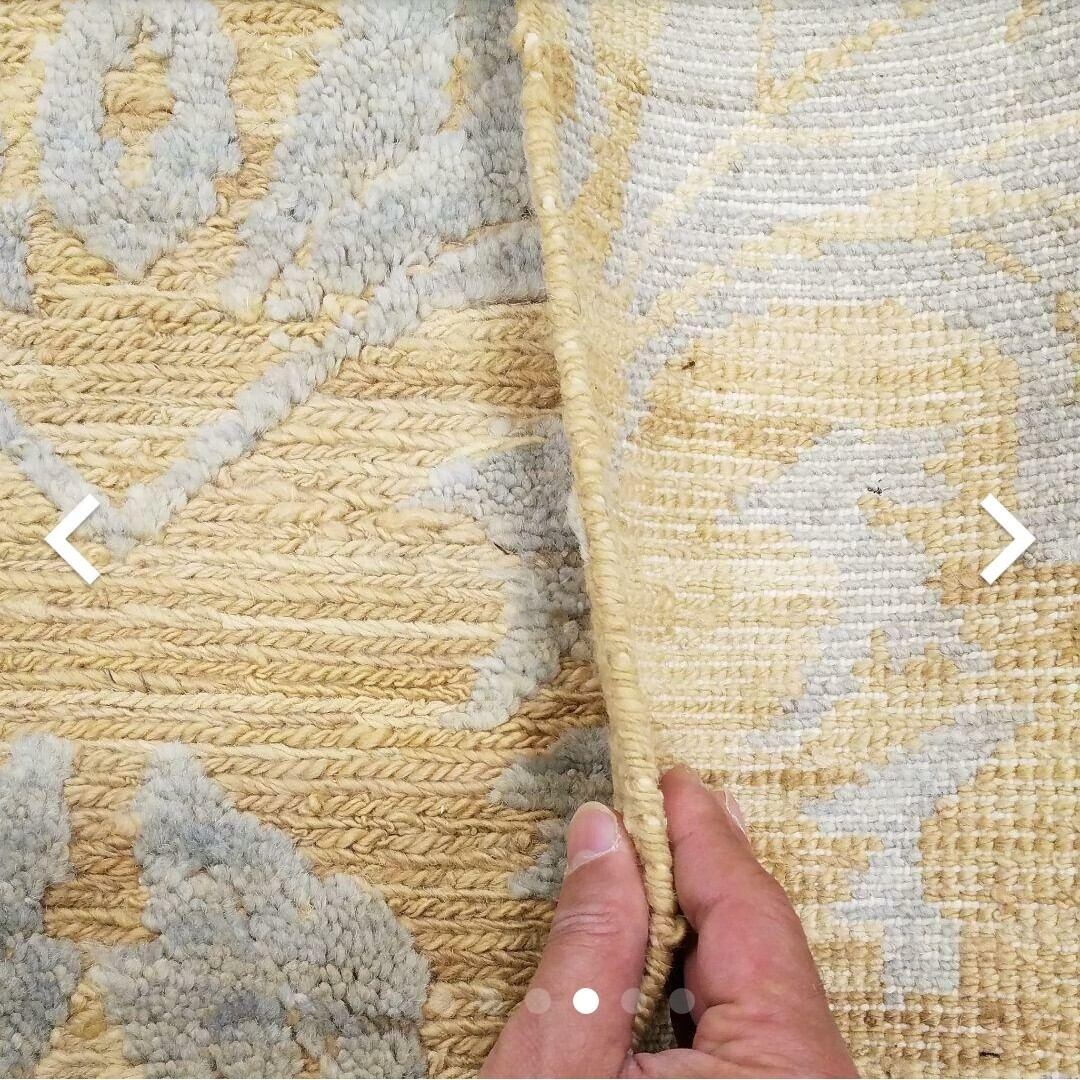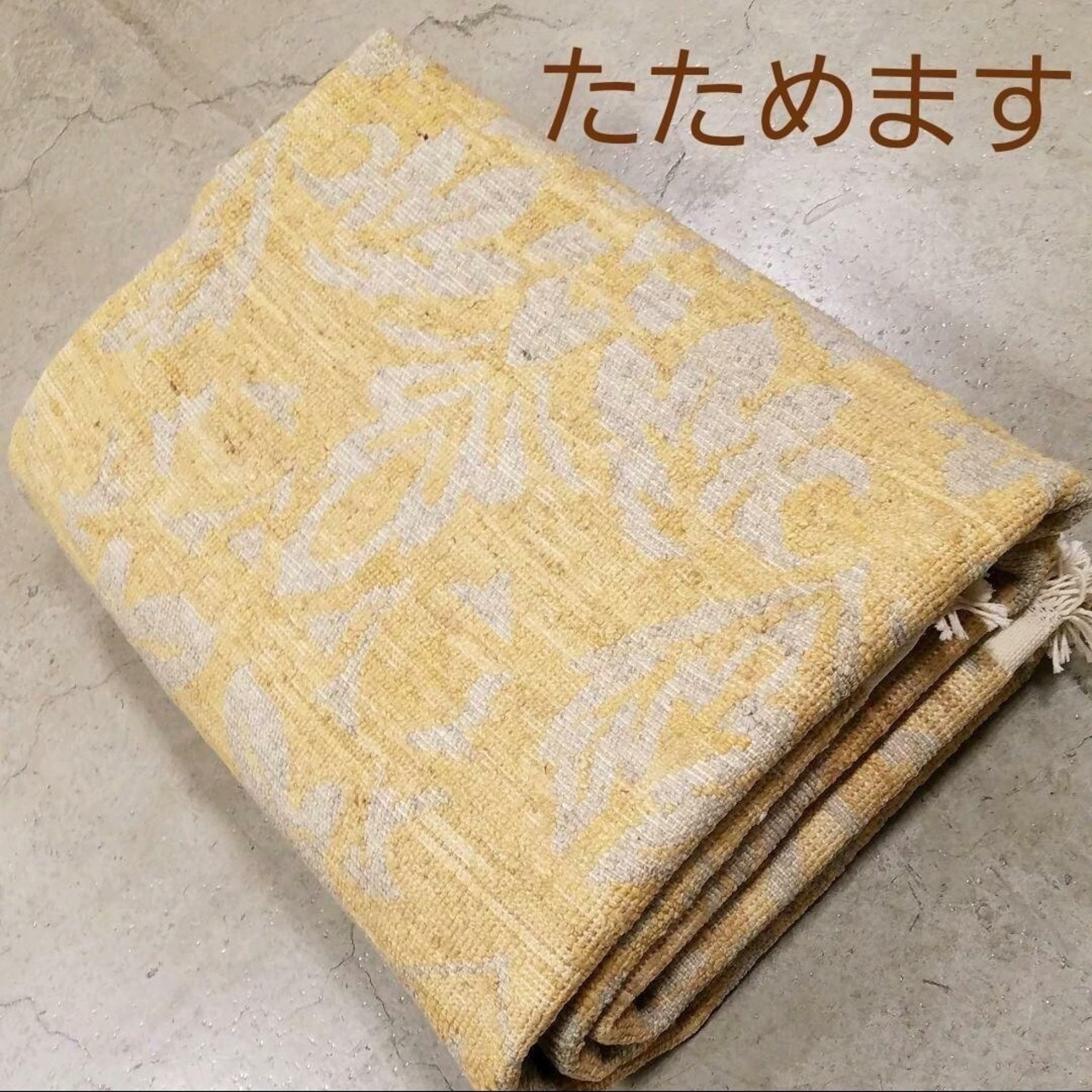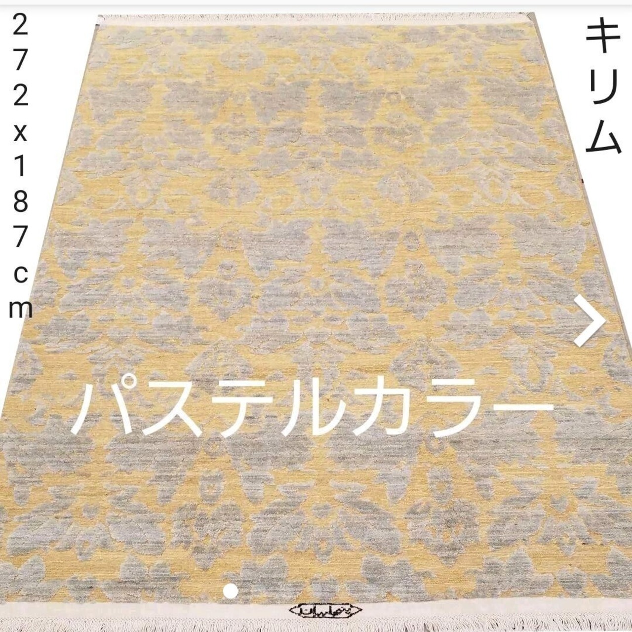 3,4,5と6番目の写真見て下さい。グレー部分はじゅうたんと茶ベージュはキリムです。凹凸の立体的の模様です。