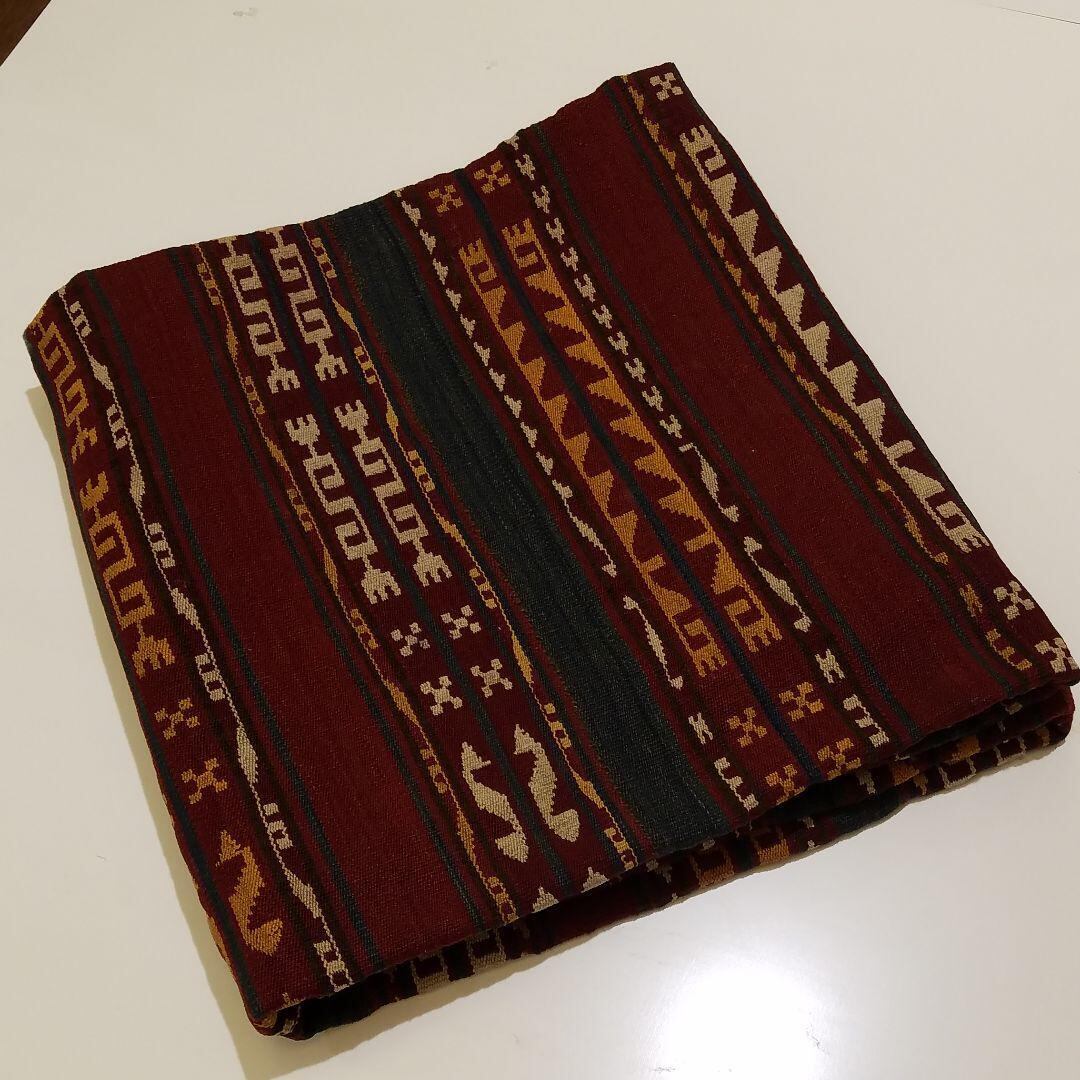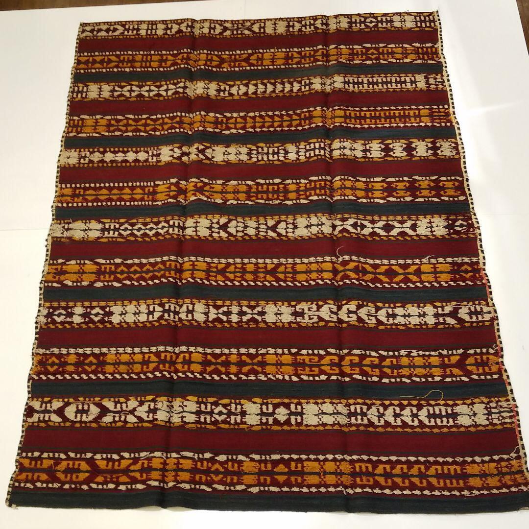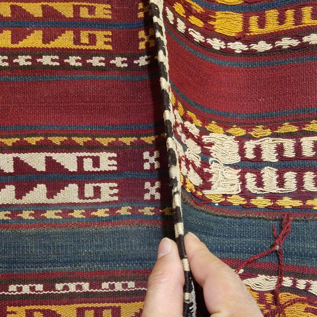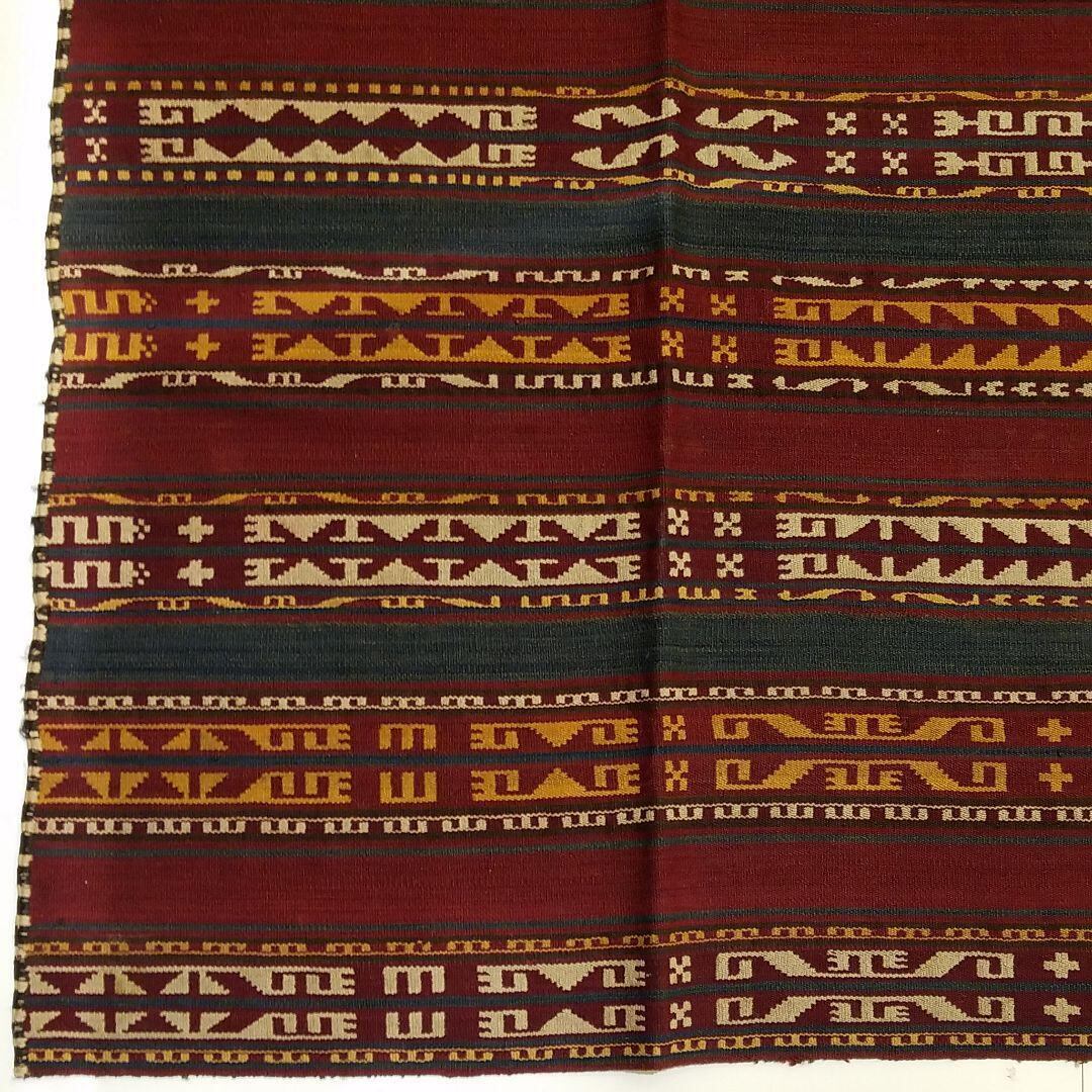 くしゃくしゃに丸められますのでたたんだり丸めたりしてインテリアとして様々な演出できます。かなり細い糸を使った、めの細かい50年前の新品未使用のキリムです。